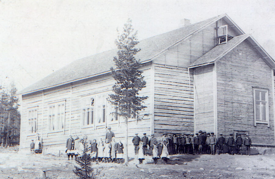 Lokakuun 22. päivänä 1892 aukenivat koulun ovet ja nelisenkymmentä 10–15 vuoden ikuista lapsukaista otettiin koulun ensi osastolle ammentamaan tiedon jyväsiä. Koulusalina oli Sutelan avara pirtti, mutta talvet 1892 ja – 93 olivat kylmiä. Moneen viikkoon ei elohopea päässyt alle 40 asteen. Ja Sutelan tuvan lattia oli uutuuttaan hatara. Kun aamulla vahvasti lämmitettiin, nousi elohopea mittarissa katon rajassa aina 30 lämpöasteeseen, mutta lattialla vesi jäätyi. Kysyttiin siinä rohkeutta opettajalta, jonka piti näissä oloissa istuttaa pieniä, kasvavia lapsia 4 tuntia yhtä kyytiä opetustyössä. Mutta opettajapa keksi keinon: Kun puoli tuntia oli opetettu, leikittiin toinen puoli, pyörittiin vinhasti piiriä ja voimisteltiin, ja niin pysyivät jäsenet taas seuraavaan puolituntisen lämpimänä.